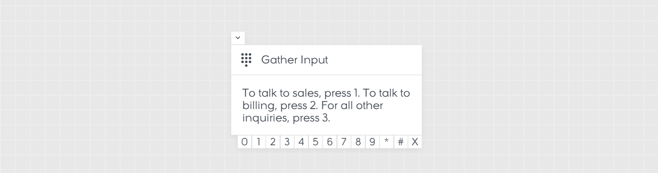 The 'Gather input' node has output connections for every keypad button. If the user presses a button that does not have a linked node, the call will hang up.
